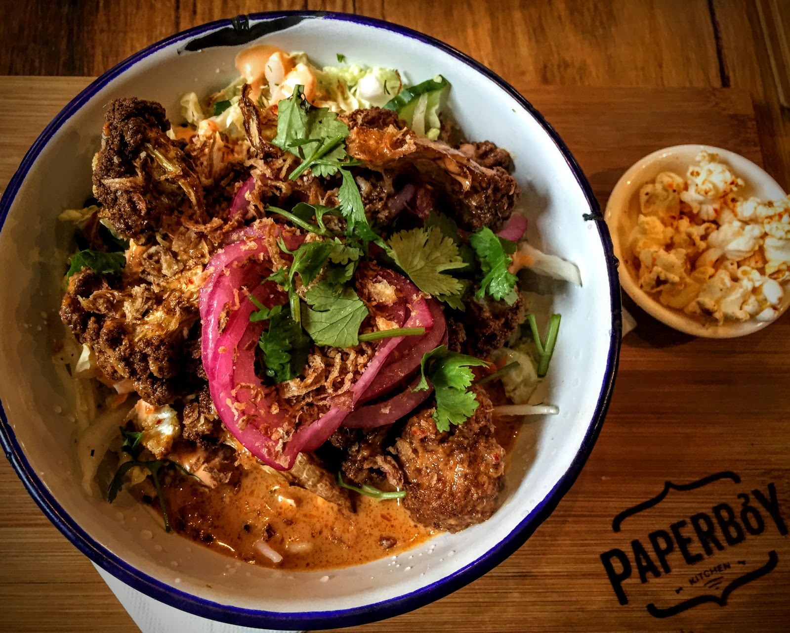 The cauliflower Bhaji, coated in it's spiced chickpea flour and fried also came with a few leaves and what seemed to be a sprinkling of ground pepper. The dish was well executed with a crunchy exterior encasing the tasty veggies.